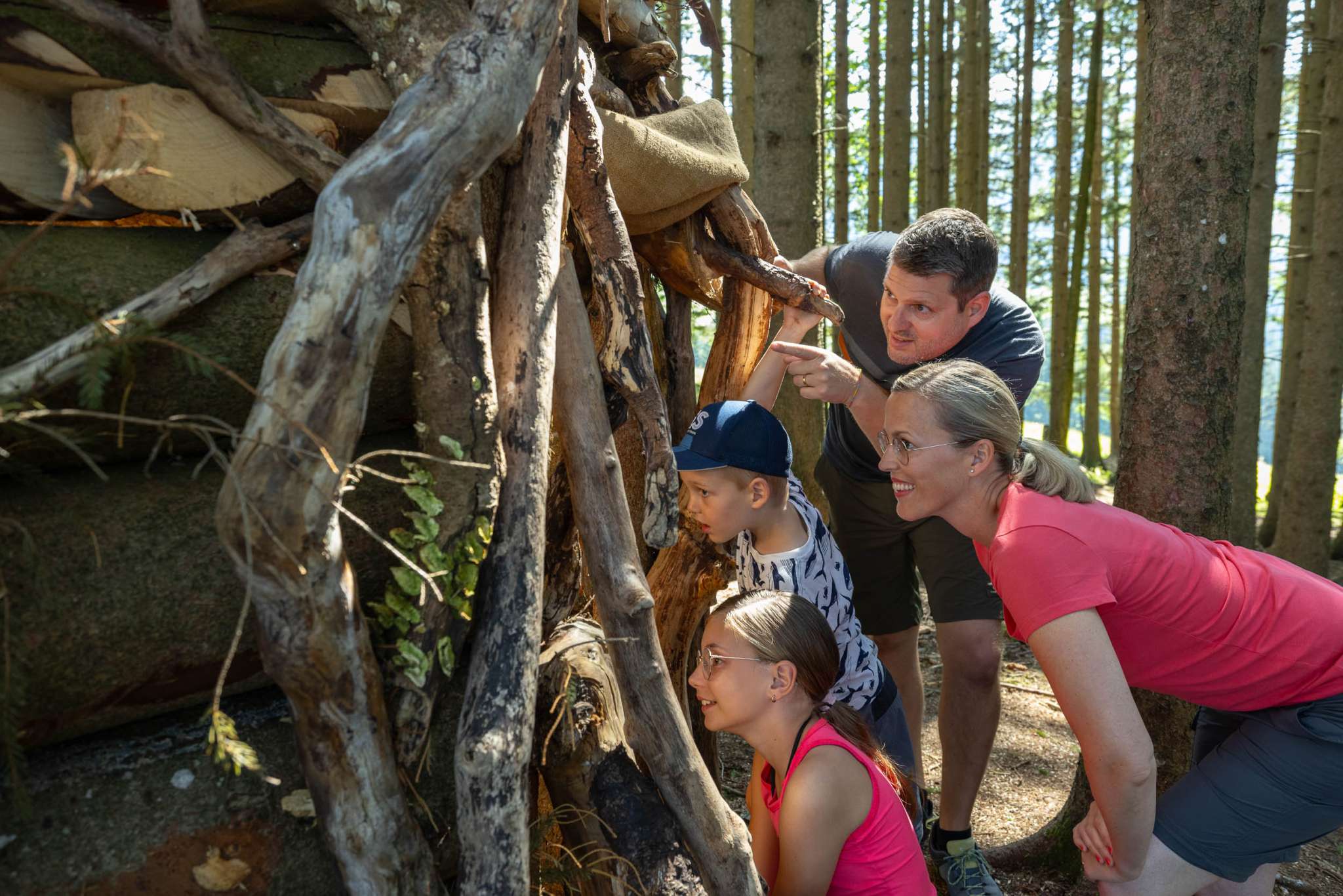 Unterwegs werden verschiedene Themen der Natur wie Tiere, Pflanzen und Wald thematisiert – ein Erlebnis für alle Sinne.
