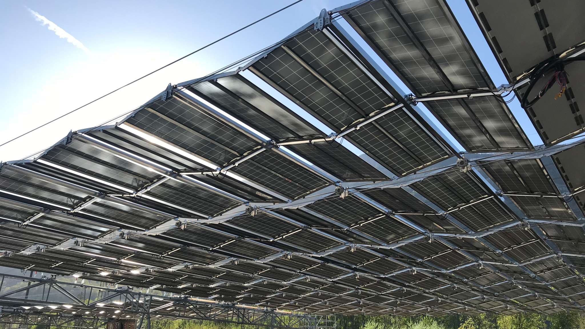 Das Solarfaltdach produziert Strom für durchschnittlich 70 Haushalte.