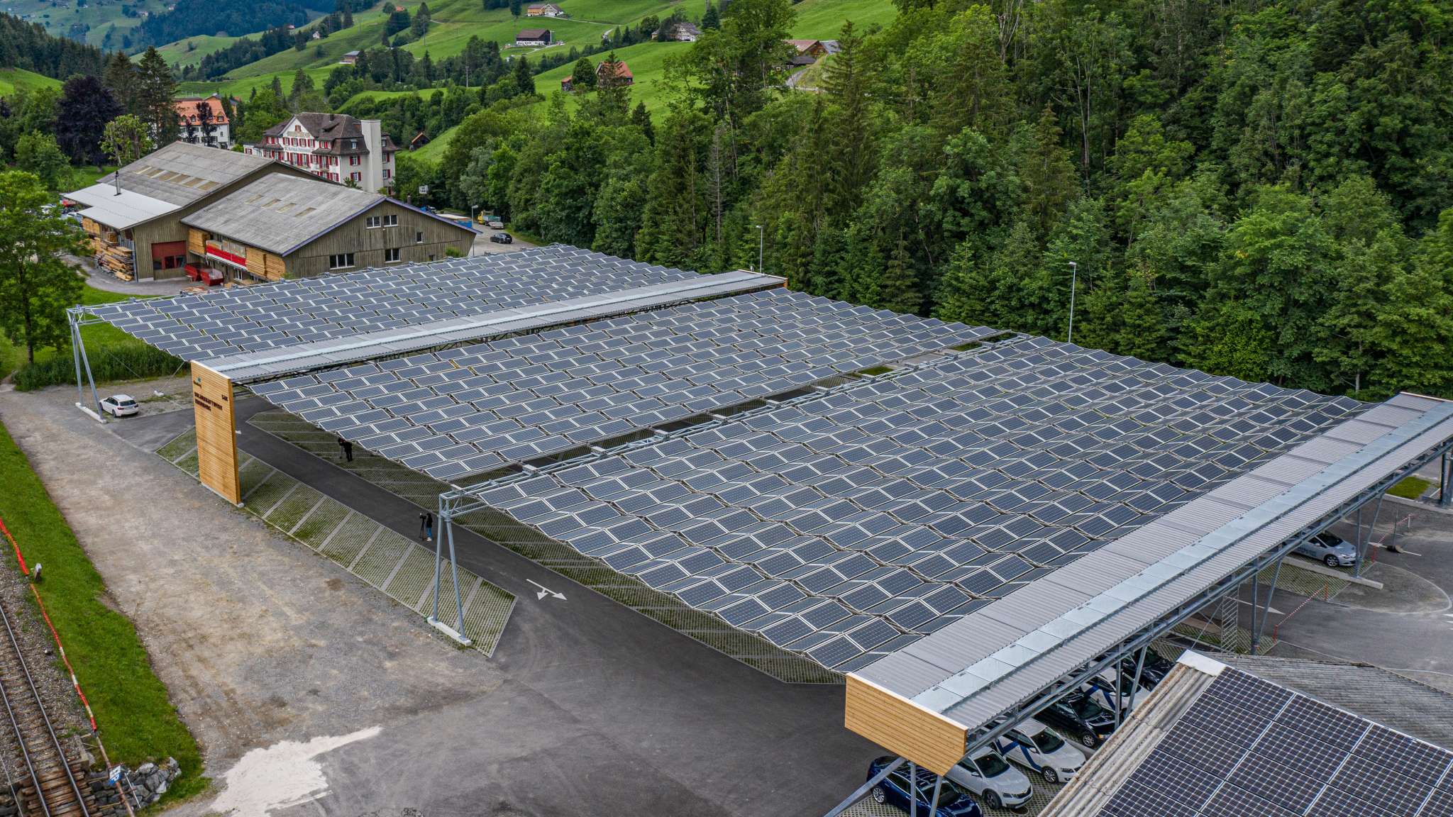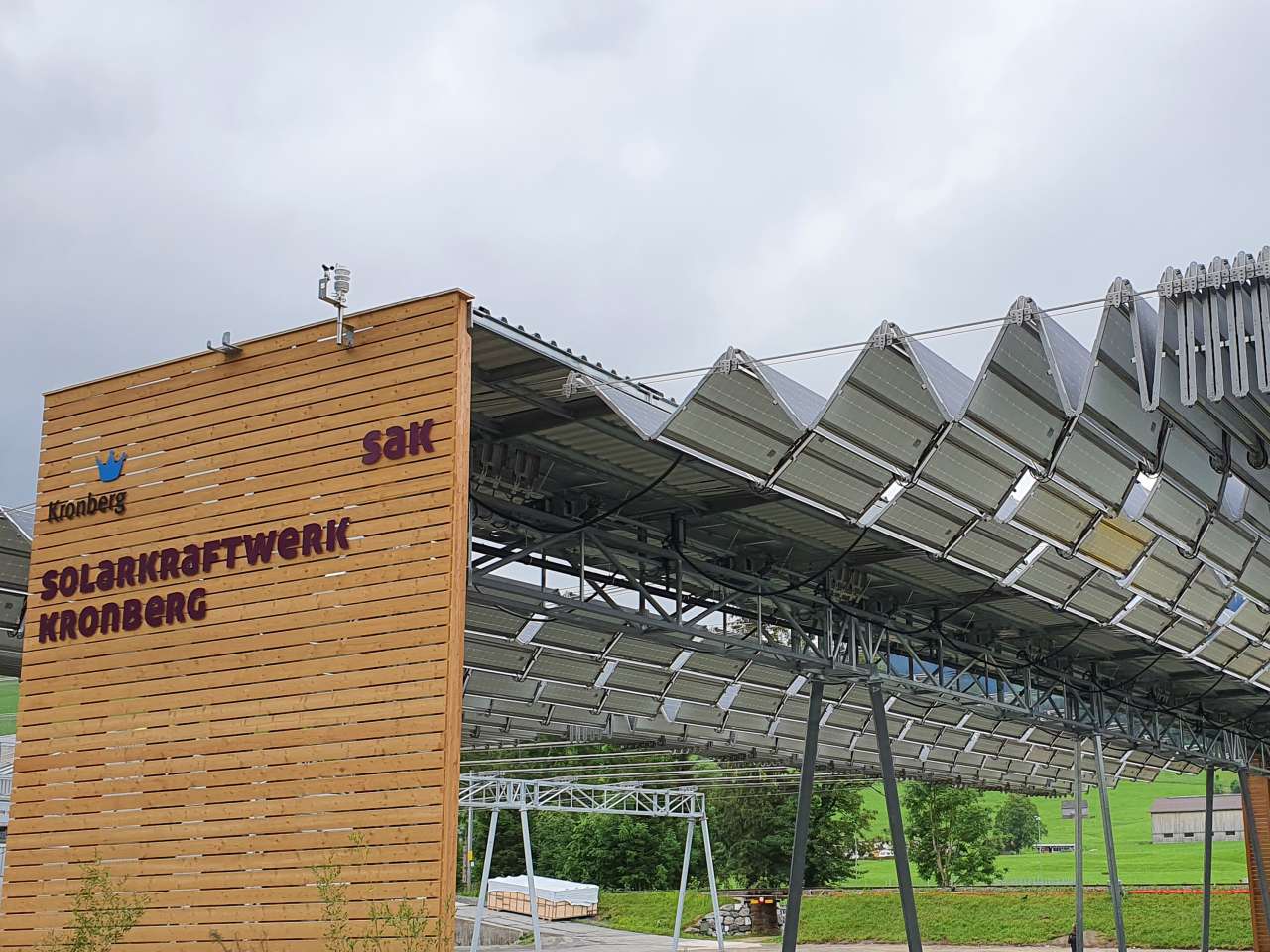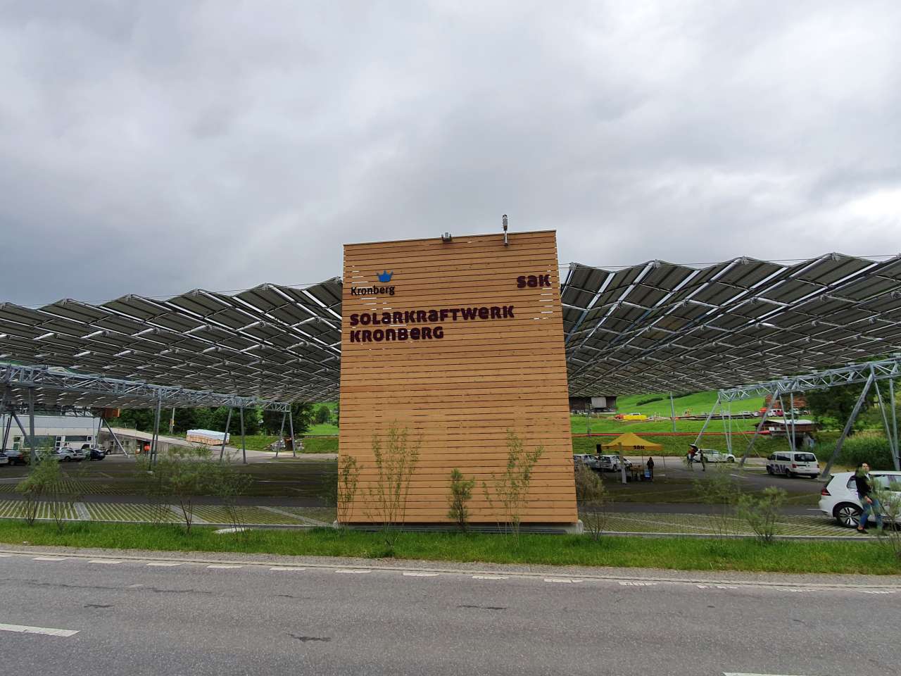 Auf unserem befestigten Parkplatz realisierten wir zusammen mit der SAK eine 2'640 m2 grosse, faltbare Photovoltaik-Anlage. Die Anlage besteht aus 1'320 Panels und produziert ca. 350'000 kWh im Jahr. Für interessierte Gäste stehen 660 Panels für das Nutzungsrecht zur Verfügung. Der Kronberg und die SAK nutzen direkt je 330 Panels.