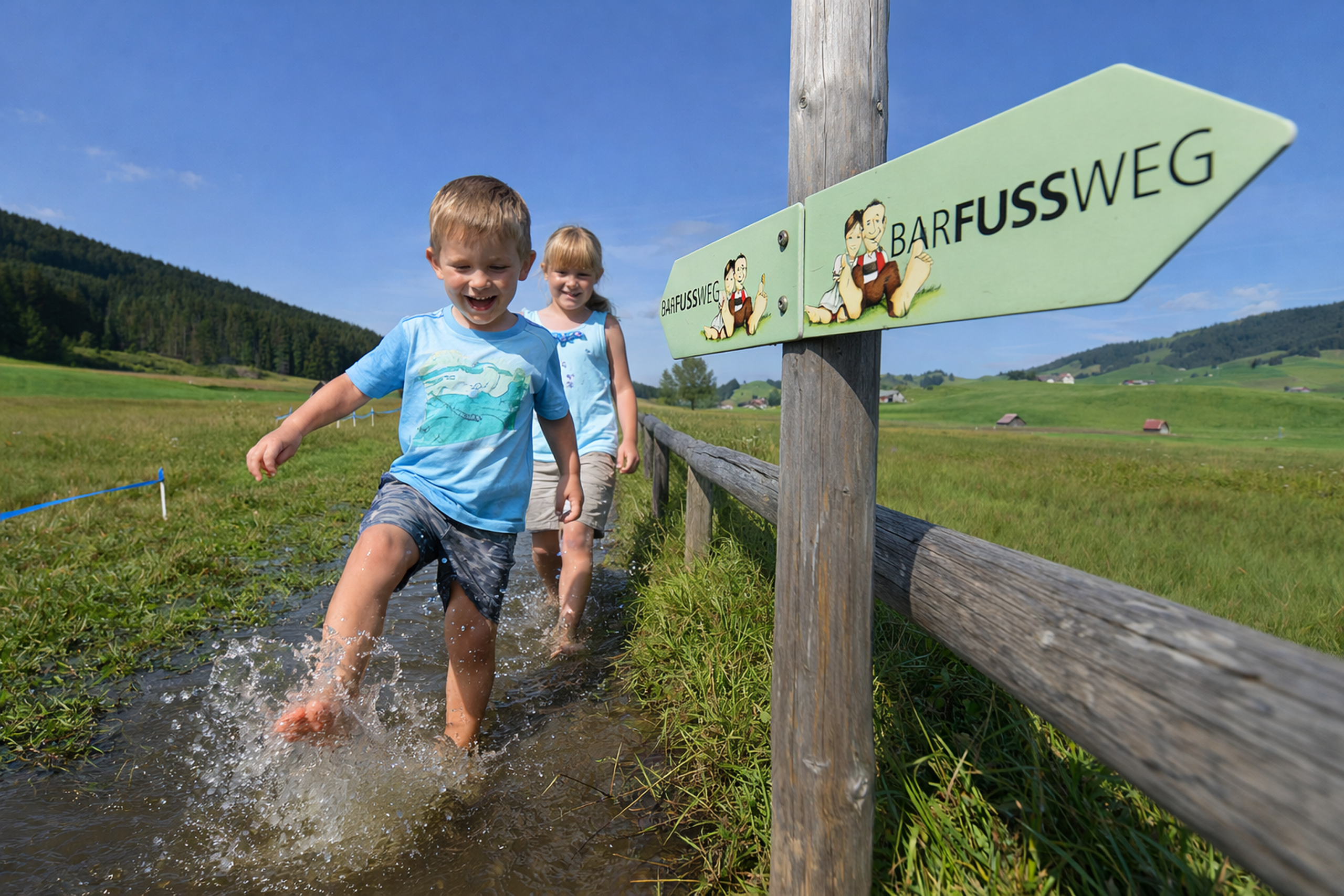 Start dieser Wanderung ist in Gontenbad. Aber erstmal heisst es Schuhe und Socken ausziehen. Der Weg führt dich durch eine Moorlandschaft zum Toobeschopf-Museum. Dort kannst du nach Manier von Dr. Kneipp deine Arme in einem speziellen Brunnen baden. Weiter wanderst du in Richtung Gonten über Wiesen und Bäche mit kurzen steinigen oder asphaltierten Streckenabschnitten. Dabei erlebst du ungewohnte Sinneseindrücke beim Barfussgehen. Von Gonten geht es weiter auf grünen Wiesen bis zum Endpunkt. Kurz vor Jakobsbad hast du im Bach die Möglichkeit, deine Füsse zu waschen.