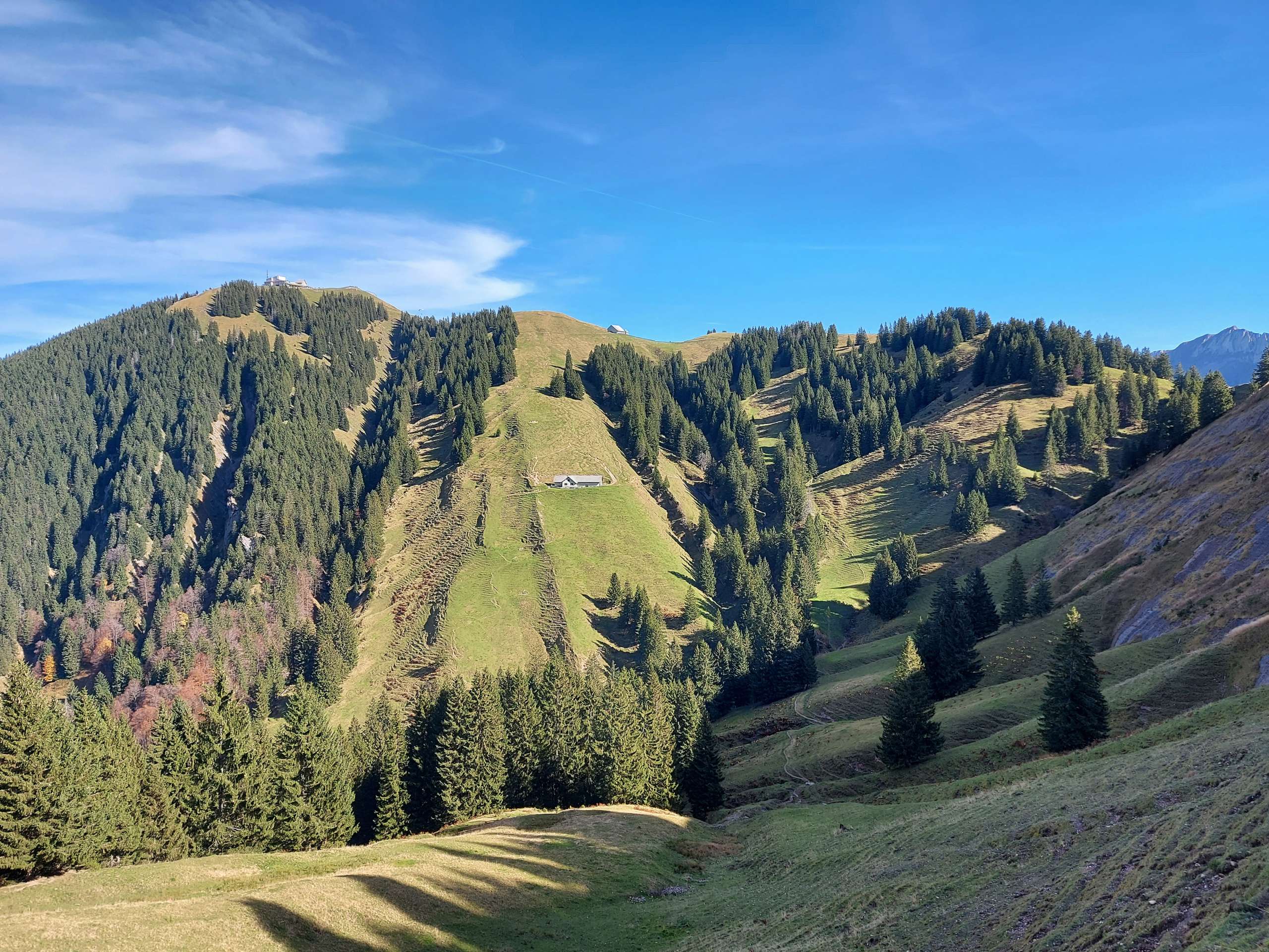 Komfortabel überwindest du mit der Luftseilbahn die Höhenmeter von Jakobsbad auf den Kronberg. Vom Kronberg wanderst du auf dem breiten Rücken mit wunderbarer Säntis-Sicht in Richtung Schwägalp bis zu einem markanten Sattel unterhalb der Alp Dorwees. Dort gilt es den Wegweiser, der nach rechts in Richtung Petersalp-Lauftegg zeigt, nicht zu verpassen. Es folgt eine breite Krete, die in grossem Bogen westlich um den Bälmli-Talkessel herumführt. Vor der Petersalp steigt der Weg noch einmal steil an, bevor er dann – vorbei am idyllischen Dürrenspitzli – kontinuierlich bis zur Lauftegg an Höhe verliert. Der Weg führt weiter über die liebliche Lauftegg, vorbei an den verstreuten Weiderechten und ersten Bauernhöfen, wo man schon von weitem die Türme des Klosters Leiden Christi sowie die Talstation der Kronberg Luftseilbahn erblickt.