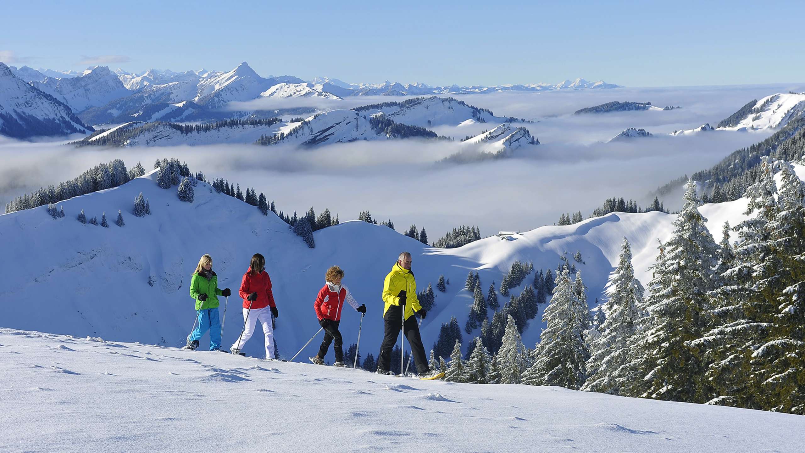 Auf der Route hast du die Gelegenheit, zahlreiche schöne Ausblicke auf das Appenzellerland mit seinen verschneiten Bergen und Hügeln zu geniessen.